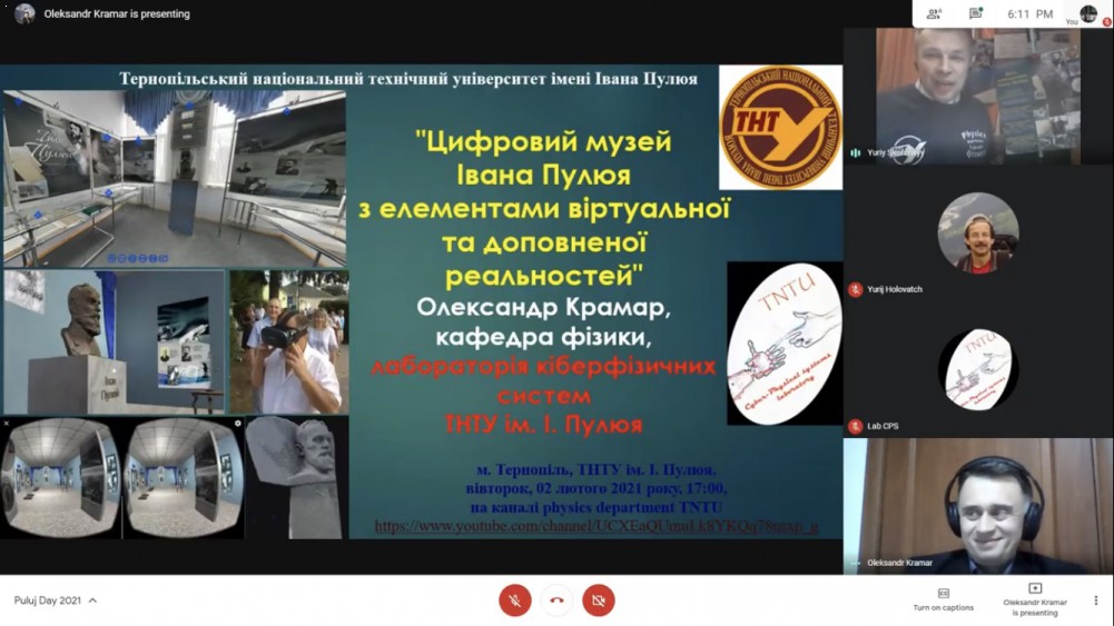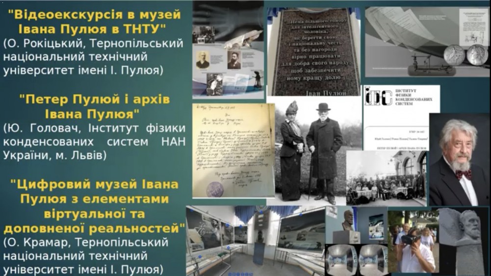 - доповідь Олександра Крамара, кандидата фізико-математичних наук, доцента ТНТУ ім. Івана Пулюя про цифровий музей Івана Пулюя з елементами віртуальної та доповненої реальностей