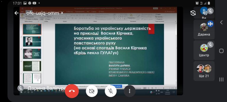 Слухачі Кременецької філії - учасники Всеукраїнської онлайн-конференції в Запоріжжі 26.04.2021![]() Із 23 по 25 квітня 2021 року в Запоріжжі відбулося масштабне наукове дійство – Всеукраїнська історико-краєзнавча конференція учнівської молоді в онлайн режимі. У заході взяли участь юні науковці з 19 областей. На конференцію пройшли роботи двох членкинь Кременецької філії Тернопільського обласного відділення МАН України.