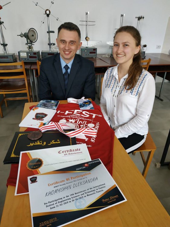 З 21 по 26 березня 2019 року слухачка Тернопільського обласного відділення МАН України Олександра Хомишин взяла участь у ХХ Міжнародному фестивалі інженерних наук і технологій «І-FEST-2019» в Тунісі.