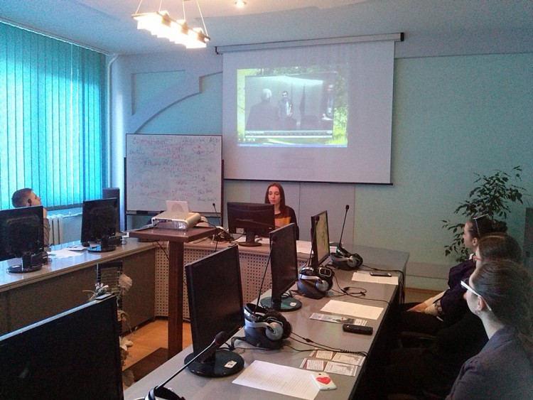 Саме такі висновки зробили слухачі міського відділення, взявши участь у занятті-тренінгу «Професійний імідж перекладача», який провела Іванців Орислава Володимирівна, викладач секції англійської мови, кандидат філологічних наук ТНПУ ім. В. Гнатюка. Заняття пройшло у лабораторії синхронного перекладу університету. Слухачам було запропоновано переглянути ряд коротких відео, у яких професійні перекладачі з ООН та Європейського парламенту розповідали про всі особливості цієї непростої професії. Разом із викладачем юні мовознавці розвінчали деякі міфи щодо перекладацької діяльності, наприклад, те, що вона не змінюється упродовж сотень років або те, що для якісного перекладу не потрібно застосовувати творчі здібності. У кінці заняття МАНівці мали можливість відчути себе перекладачами-синхроністами. За допомогою обладнання лабораторії (спеціальних кабінок, розміщених в її кінці, за стіною з віконечками, мікрофонів і навушників) вони слухали текст, одночасно вимовляючи переклад попередніх фраз чи речень. Кожен погодився, що це вимагає великих зусиль та вмінь, але в той самий час, це надзвичайно цікаво. Робити дійсно високоякісні переклади – справжнє мистецтво, що дозволяє, здавалось би, таким різним людям розуміти один одного. |
