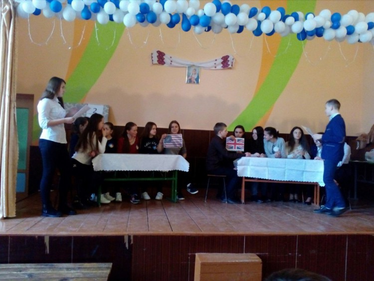 Юні мовознавці поділилися на дві команди «Dreamers» («Мрійники») та «Warriors of Knowledge» («Воїни знань»). Самі їх назви свідчили про прагнення до нових звершень, демонстрацію усіх свої знань з англійської мови. Захід складався із різноманітних змагань, які були розраховані на використання лексики, граматики, знання культур англомовних держав та загальну ерудицію: продовжити прислів’я, знайти заховані слова, виправити помилки, описати одну з англомовних країн, відгадати відомих людей та їх професії, з’єднати авторів та їхні книги, розказати скоромовку. Особливо цікаво пройшли конкурси капітанів та вболівальників. Під бурхливі оплески учасники КВК виконували пісні англійською. Саме такі веселі та цікаві заходи заохочують дітей до навчання, підвищують їх ентузіазм. Учні вчаться працювати в командах, гуртуючись навколо спільної мети. |