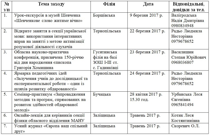 До уваги викладачів секцій філій Тернопільського обласного відділення МАН України!