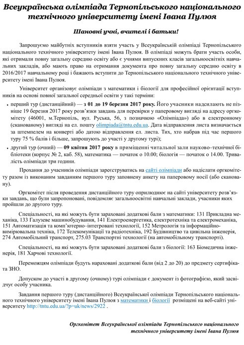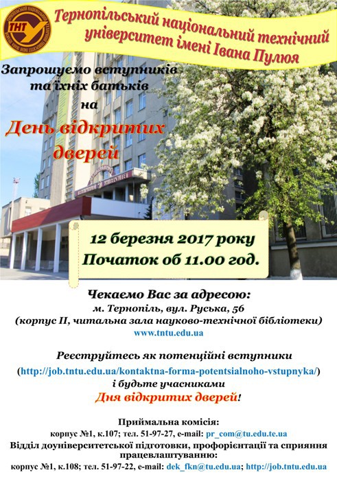 Тернопільський національний технічний університет імені Івана Пулюя запрошує: